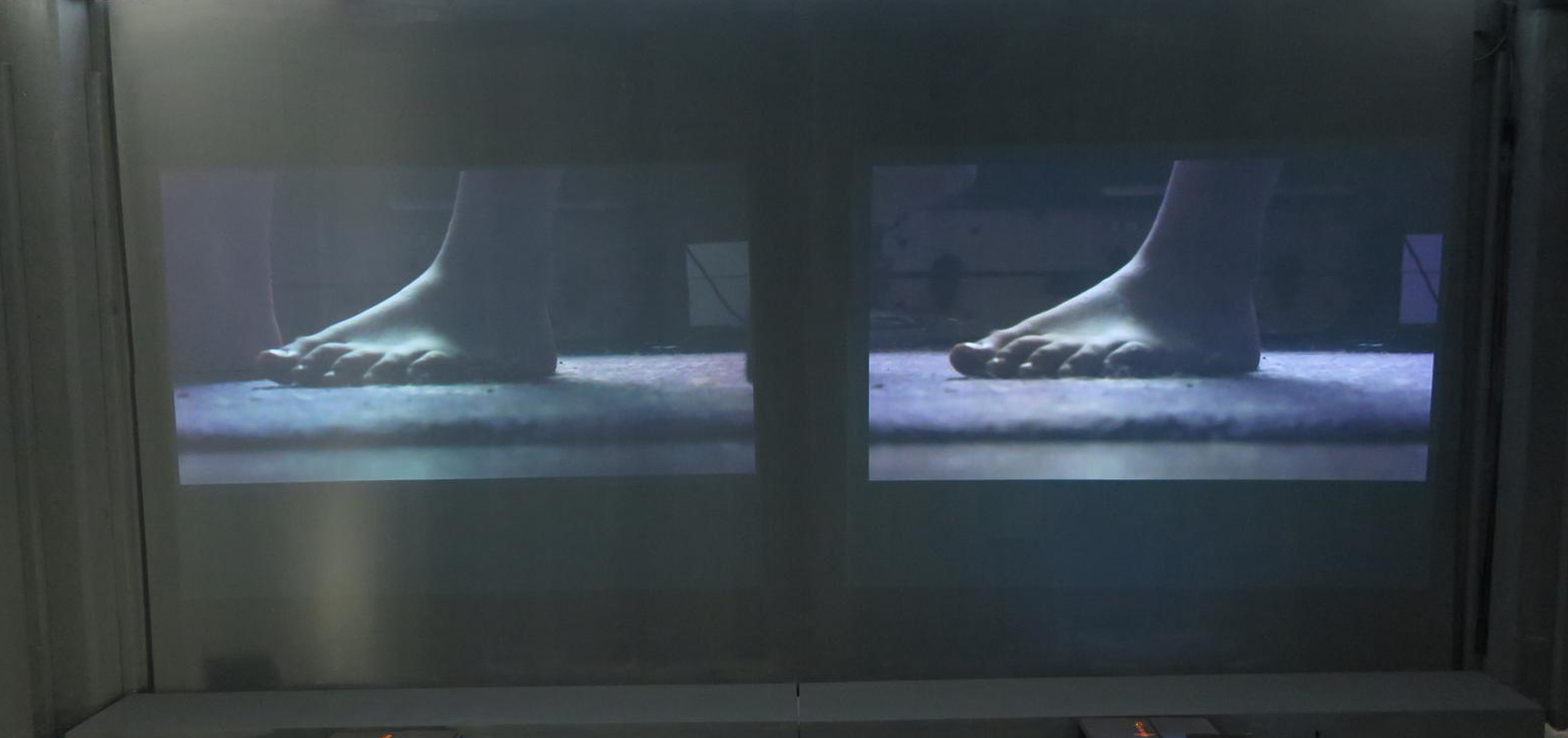 hku-graduation-2018_8811 1 juli 2018Full resolution (1574 × 741) Kyra de Rooij Intrigerend spel van 2 paar dezelfde voeten over twee schermen.